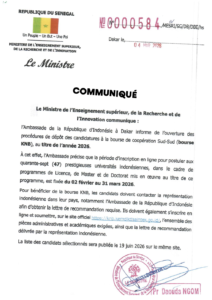 Ouverture des procédures de dépôt des candidatures à la bourse de coopération Sud-Sud (bourse KNB), au titre de l’année 2026